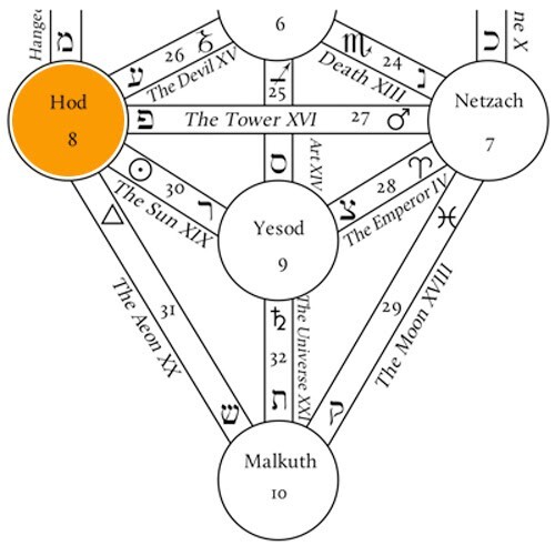 호드는 카발라 생명의 나무의 8번째 세피라 입니다. 인체에서 이 에너지 센터는 오른쪽 엉덩이 고관절 부분에 위치하지만 호흡계, 중추신경계, 뇌, 갑상선, 손을 관장하는 수성의 행성 에너지와도 관련이 있습니다. 호드의 에너지는 이러한 신체 시스템의 질병이나 불균형으로 인한 치유 과정을 돕는 데 사용될 수 있습니다.