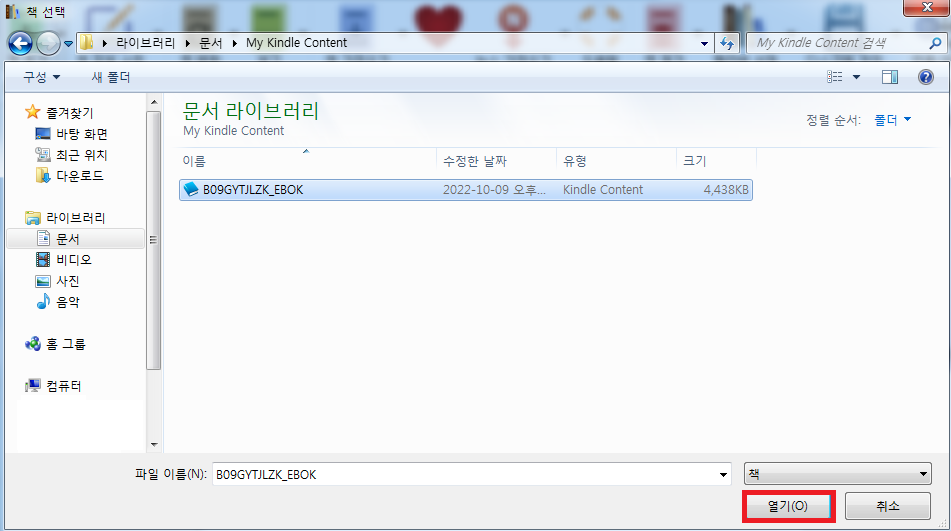 라이브러리 -> 문서 -> My Kindle Content
