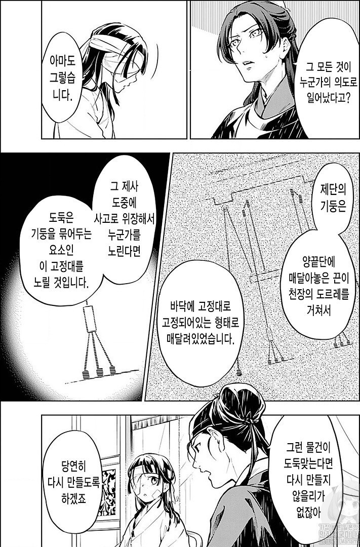 제단의 기둥은 양끝단에 매달아놓은 끈이 천장의 도르레를 거쳐서