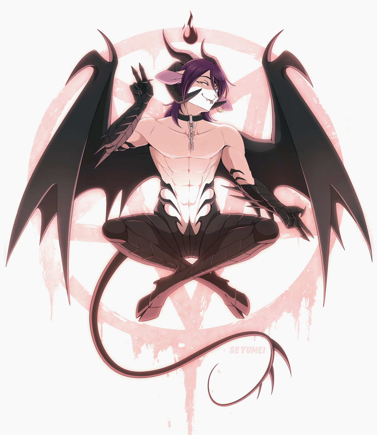 그림의 가슴은 다산과 소원 성취를 연상시키는 유방의 중성적인 이미지를 드러냅니다. 염소 머리는 판과 고대의 야생 사티르 신을 직접적으로 언급하고 있습니다. 이마에 있는 오각형은 아즈나 차크라를 축복하고 보호하는 다섯 가지 요소를 연상시킵니다. 횃불처럼 생긴 왕관 위에는 깨달음의 불꽃인 히브리어 요드(신의 빛)가 타오르고 있습니다. 난해한 연구와 실험을 통해 신격을 확인하면 이 상형 문자에 내재된 진리가 드러나고 우리 욕망의 열매가 나타납니다.