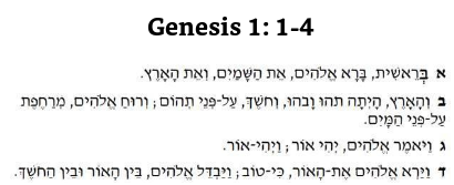 1단계: 위의 창세기 구절에 나오는 히브리어 글자를 눈으로 훑어보면서 근원과의 영적 연결이 필요하다는 생각을 합니다.