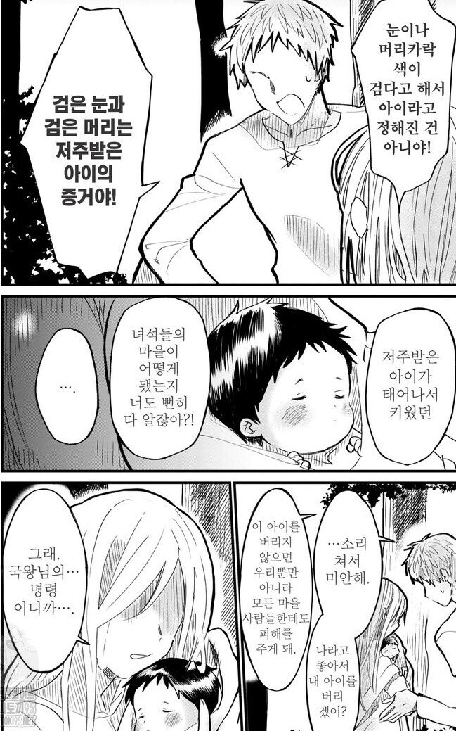 검은 눈과 검은 머리는 저주받은 아이의 증거야!