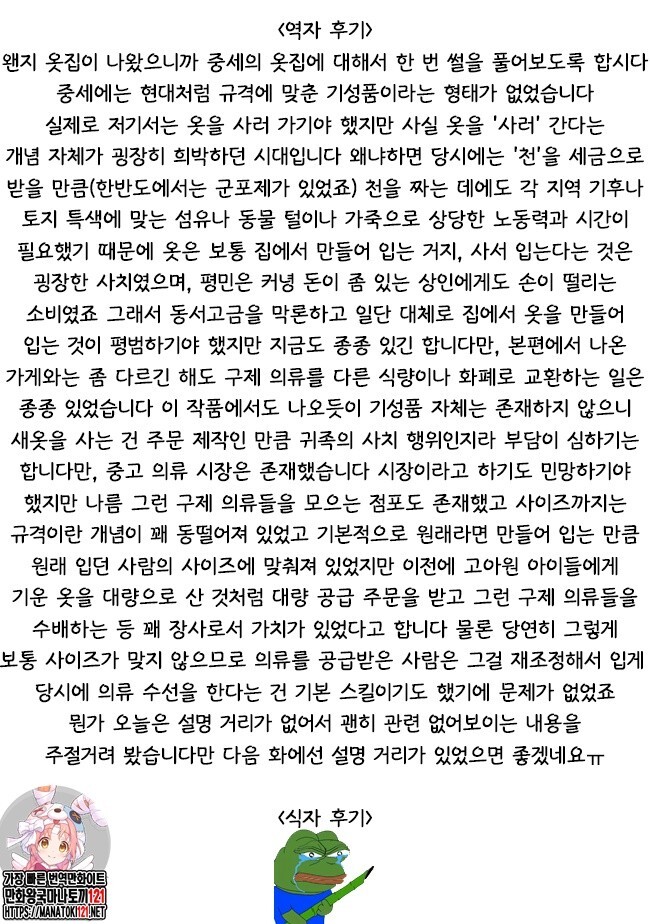 책벌레의 하극상 역자후기로보는 중세시대 옷집, 신분차이