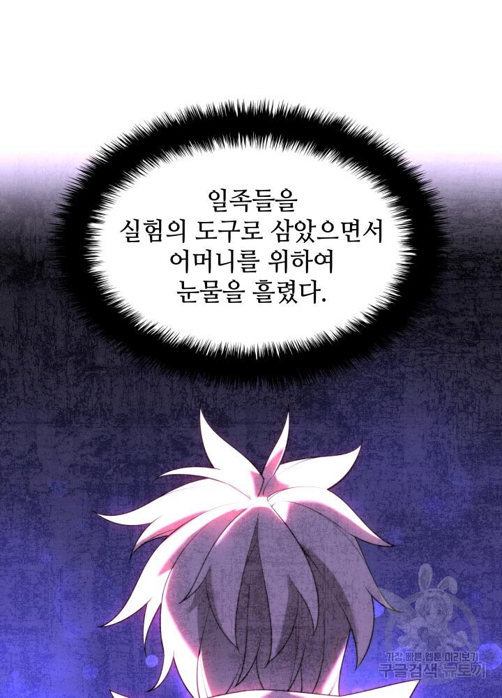 일족들을 실험의 도구로 삼았으면서 어머니를 위하여 눈물을 흘렸다.