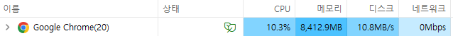 크롬 켰을 뿐인데 메모리가 8.5기가나 먹네요ㅋ