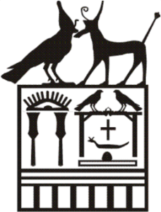 그림 6 : 투트모시스 3세의 카르투슈에 나오는 '황금 호루스'의 예; 매 밑에 매달린 구슬에는 '금'이라고 적혀 있습니다.