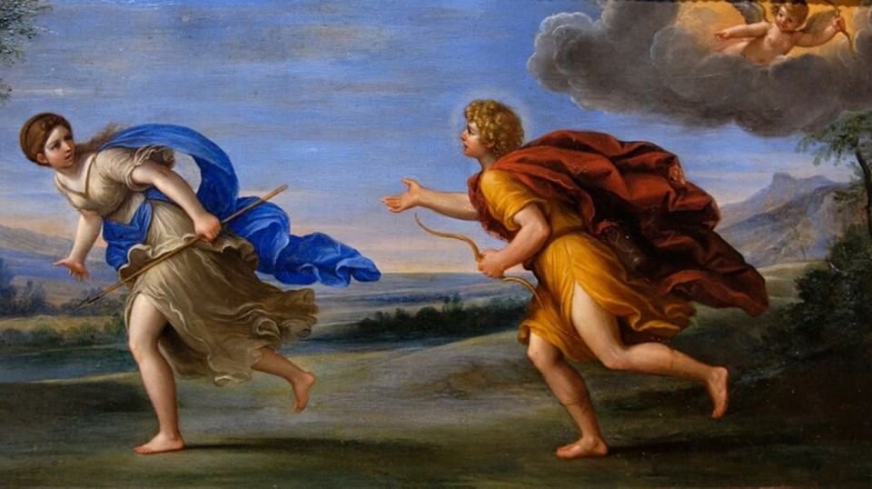길가던 강의 신 페네이오스의 딸 님프 다프네에게는 사랑을 거부하는 납화살을 쏘았다.