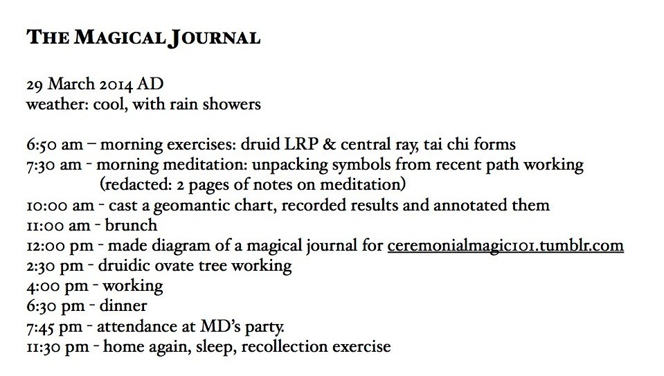 마법 일기에 대한 글은 종종 쓰이지만 깊이 있게 연구한 사례는 거의 없습니다. 로버트 오길비 크롬비의 마법 일기는 제가 아는 한 실제로 출판된 몇 안 되는 책 중 하나이며, 상당히 깊이 있게 다루고 있습니다. 칼 융의 레드북은 정확히 마법 일기는 아니지만, 마법 일기의 힘을 보여주는 예라고 할 수 있습니다.