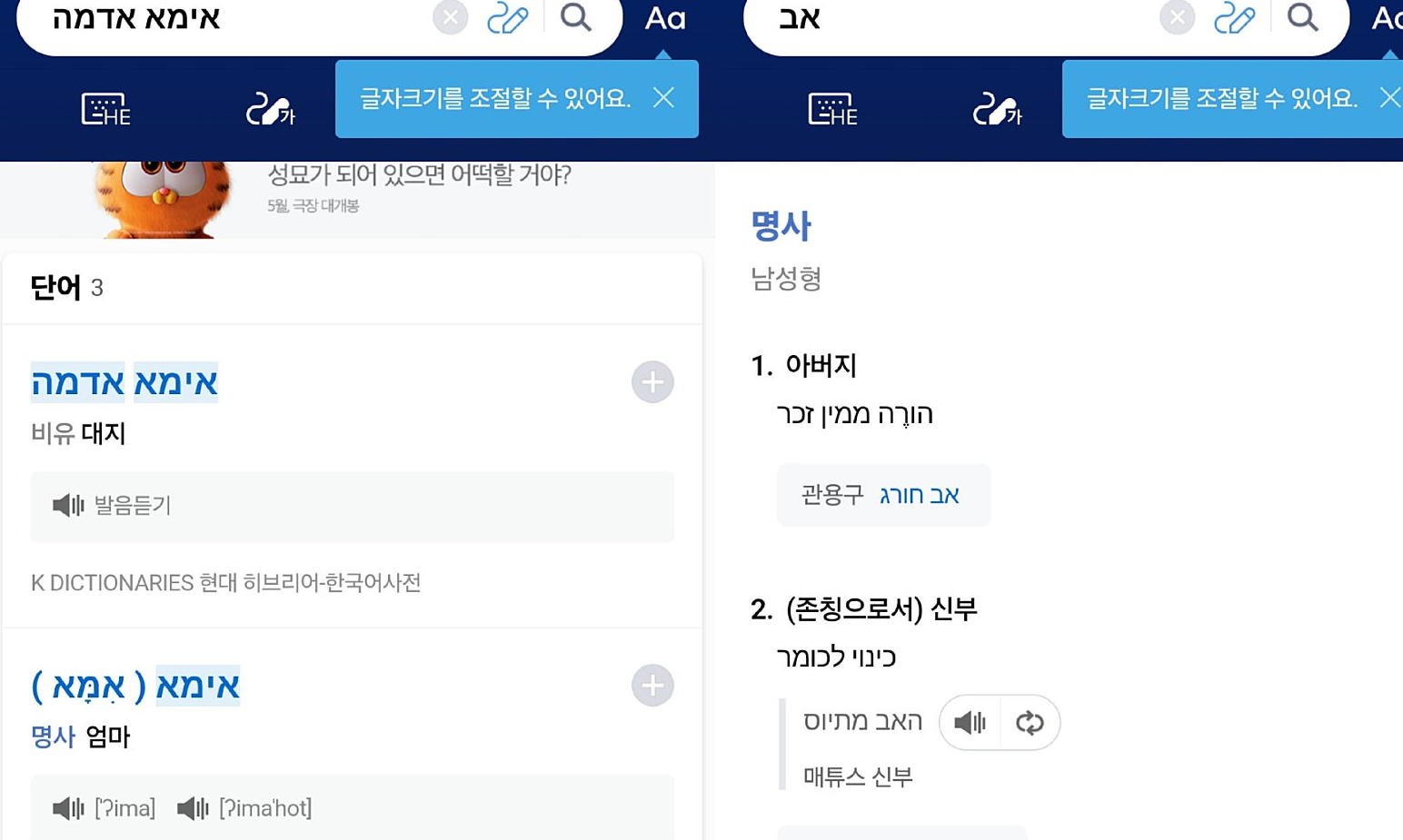 모두 히브리어가 매칭되죠?
