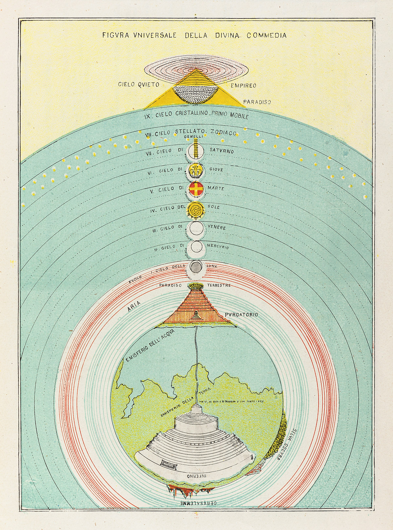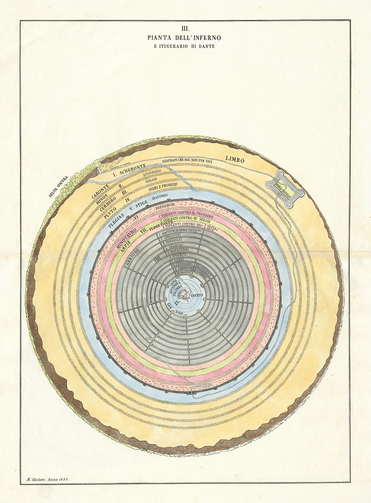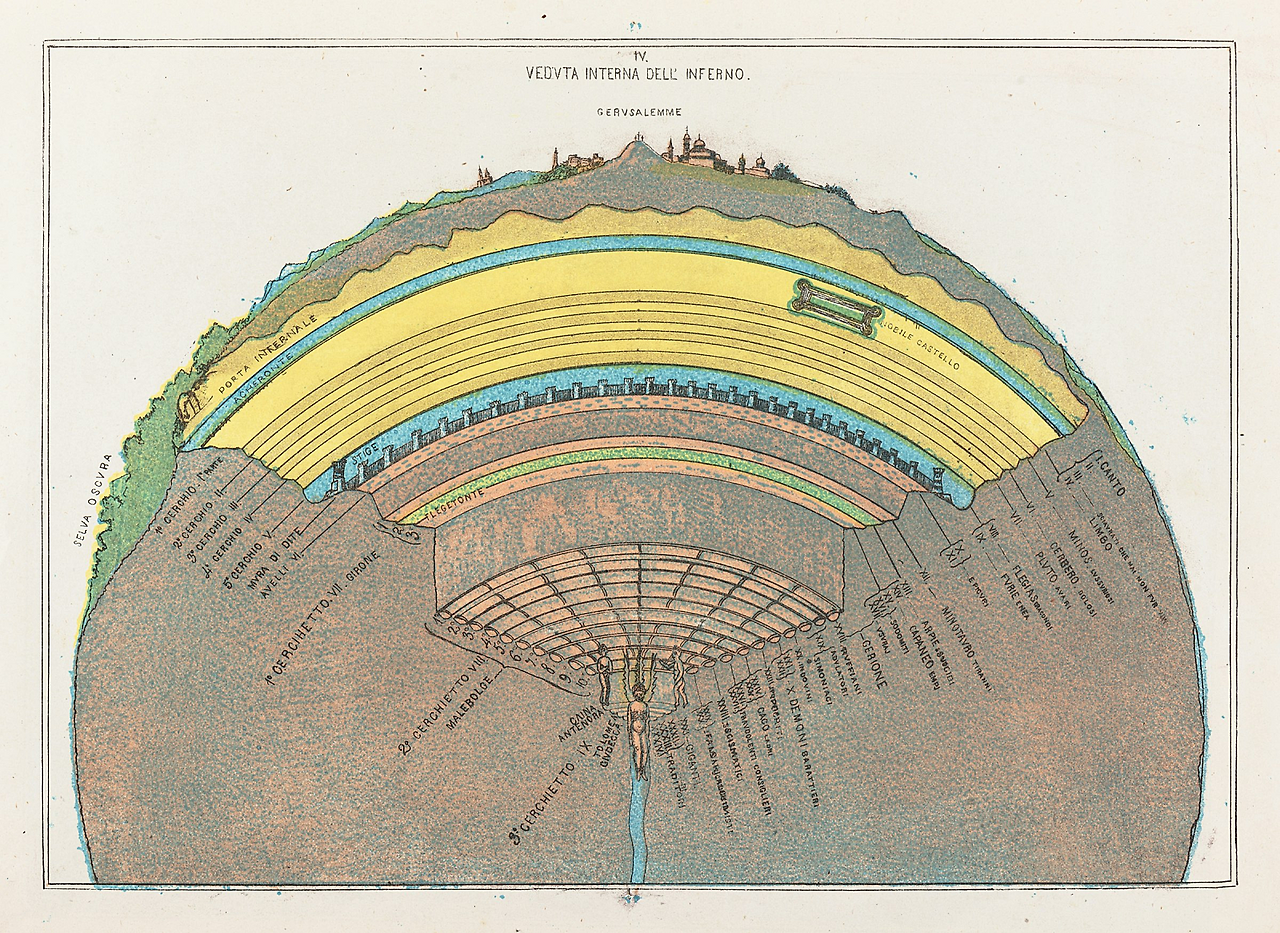 단테의 도표 : 미켈란젤로 카에타니의 신곡 지도 (1855/1872)