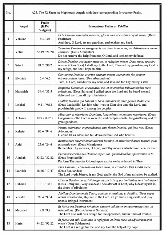 신의 72가지 권능 각각마다 성경구절을 매칭시켜 공개되어 있다.