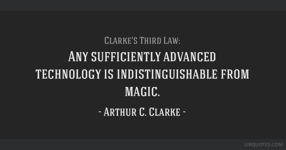 3법칙: 충분히 발달한 과학 기술은 마법과 구별할 수 없다.(Any sufficiently advanced technology is indistinguishable from magic.)