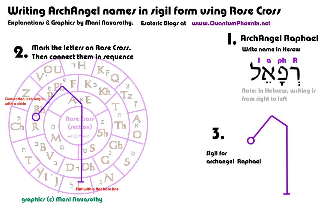 4대천사의 장미십자가 히브리어 시길과 몇가지 시길 예제