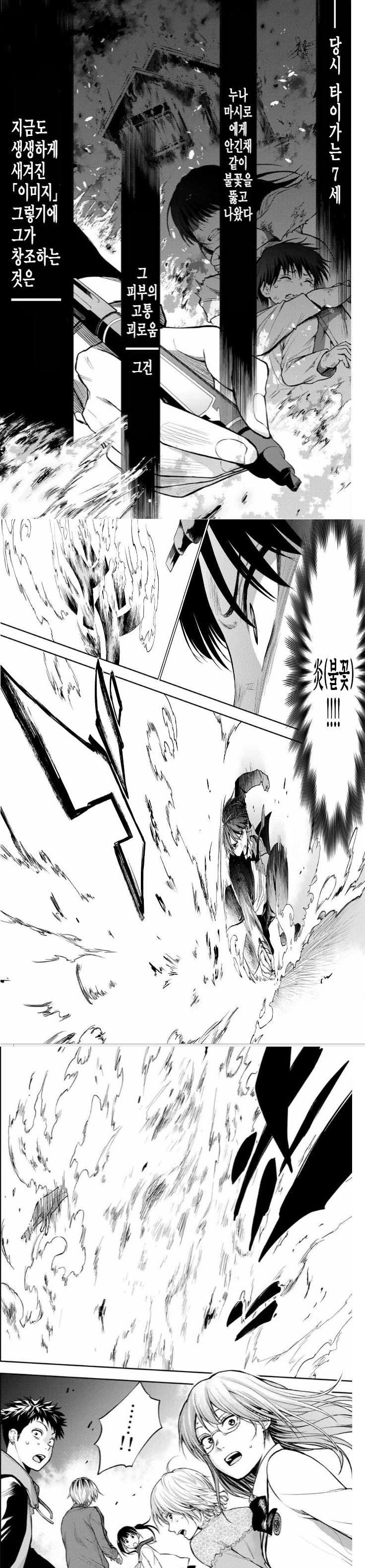 누나 마시로에게 안긴채 같이 불꽃을 뚫고 나왔다.