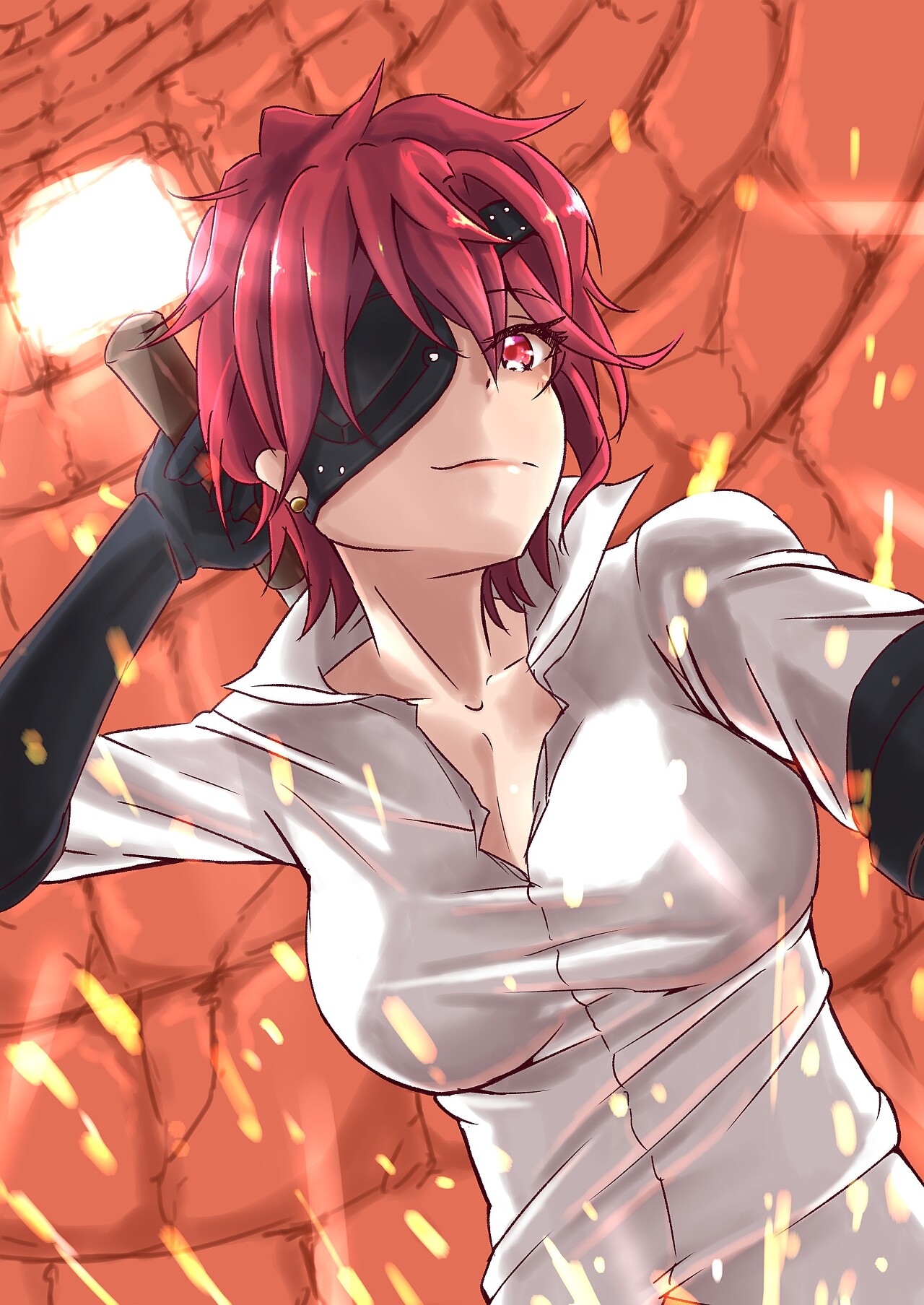 "메와 쇠, 그리고 불타는 열정만 있으면 무기는 어디서든 만들 수 있지-."