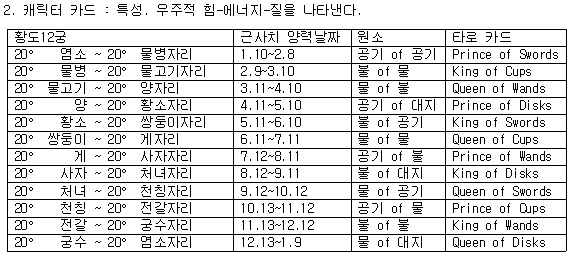 예전에 올린 듀켓 할배의 생일 타로 부분에서 캐릭터 카드 = 시그니피케이터 카드의 선택 방법이에요.