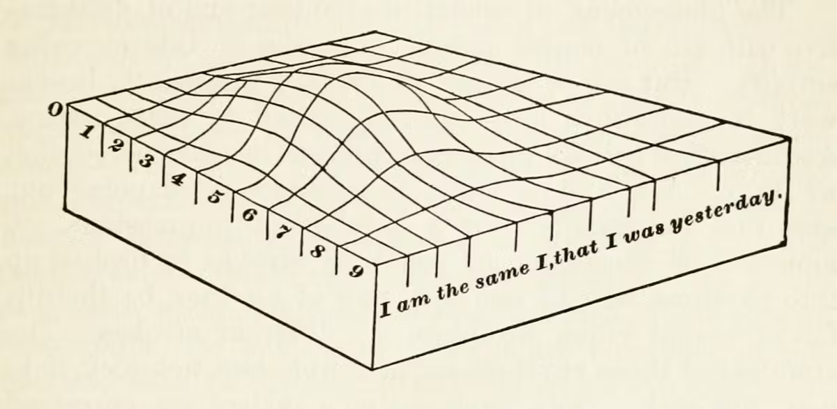 제임스가 마음을 강에 비유한 최초의 인물은 아니었습니다. 알렉산더 베인은 1855년에 이미 "의식의 흐름"이라는 표현을 사용했으며, 불교의 "마음의 흐름"(citta-santāna) 개념 역시 유사한 방식으로 자아를 특징짓습니다. 『심리학 원리』에서 "사고의 흐름"은 주체성의 유동을 표현하기 위해 신중히 선택된 이미지가 됩니다. : 현재와 과거의 생각, 감정, 감각이 어떻게 연속적인 자아의 경험으로 응집되는지, 즉 어린 시절부터 죽음 이후까지 마음속을 구불구불 흐르는 그 항상 존재하는 "나"를 말입니다. 제임스는 헤라클레이토스의 이름을 직접 언급하며 그의 사상을 재해석합니다. 즉, 사람은 결코 같은 강물에 두 번 발을 담글 수 없다는 것입니다. : "한번 사라진 상태는 다시 나타나도 이전과 동일할 수 없다. ... 이후 이를 논할 때, 우리는 이를 사고의 흐름, 의식의 흐름, 혹은 주관적 삶의 흐름이라 부르자." 이 흐름 아래에는, 그의 강 비유를 이어가자면, 무의식의 진흙과 자갈이 깔린 바닥이 자리 잡고 있습니다. 여기에는 자발적·비자발적 기억들, 심지어 대체 인격들까지 포함됩니다. 알리시아 푸글리오네시는 피에르 자네, 장 마르탱 샤르코 등 파리 피티-살페트리에르 병원에서 활동한 초기 심리학자들의 이론(여성 히스테리에 대한 해로운 이론을 발전시킨)과 대조적으로, 제임스는 "마음속에 여러 의식의 흐름이 존재하며 때로 표면으로 떠오른다는 사실이 두려워할 대상이 아니라고 생각했다"고 기록합니다. 즉, 자아는 항상 다중성을 지니고 있었다는 것입니다.