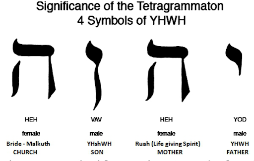 고대 히브리어 글씨체(Ashurit)로 쓰여진 신의 문자가 그대 앞에 있는 것처럼 마음으로 신의 문자(YHVH)를 유지하도록한다.