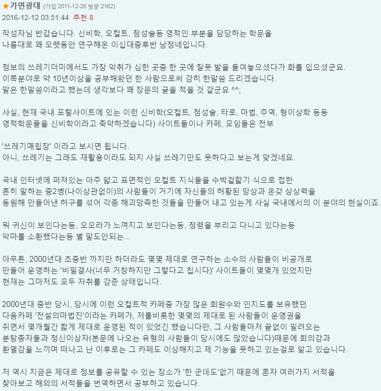 제가 활동하는 오컬트 카페.... 진짜 너무 이상해요